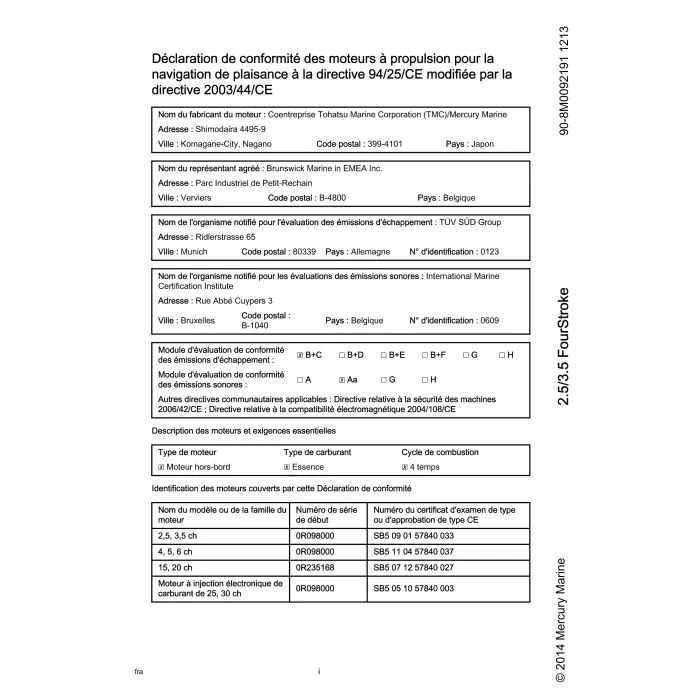 Ces notices sont incluses gracieusement lors de l’achat de votre moteur Mercury ou Tohatsu.